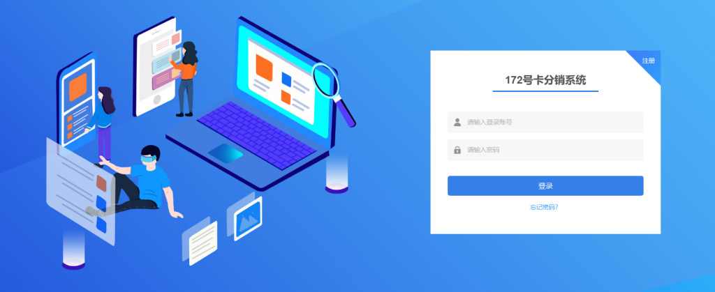 2、进入172号卡分销系统:下方扫码进入网站,找到“注册”按钮。