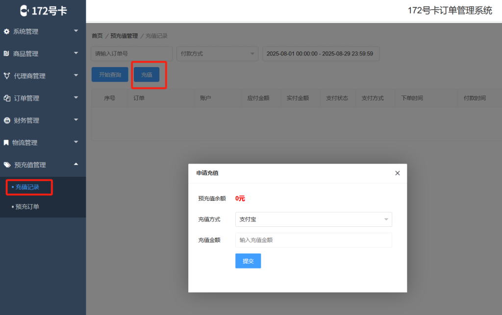 2、代理后台增加了预充值模块(提前充值,代理可以通过接口推广预充值产品和查询预充值订单)